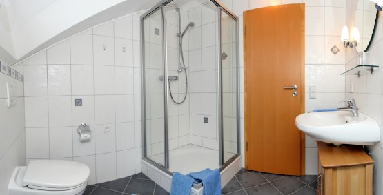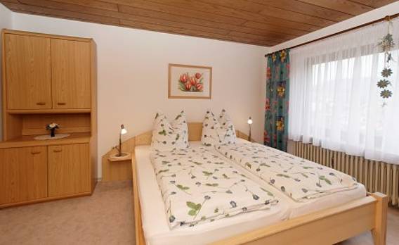 FeWo im DG ( 40m2 ), vom DTV mit 4 Sterne ausgezeichnet mit Wohnküche, SAT-TV, Telefon, Internetanschluß / WLAN ), Schlafzimmer mit Zustellbett, Bad mit DU und WC.