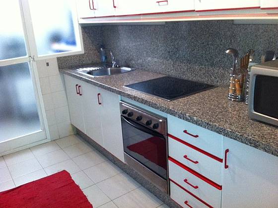Cocina eléctrica, nevera con congelador, horno pequeño, cafetera, lavadora.