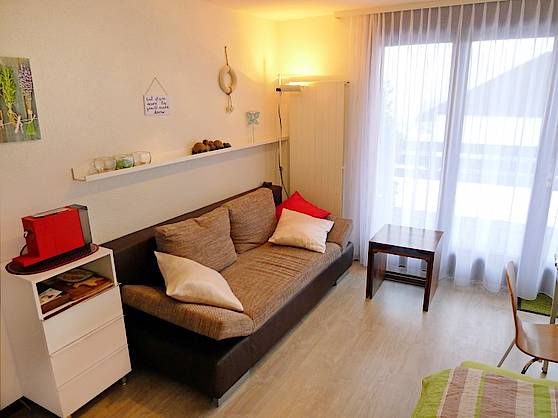 Gemütliches Studio mit 2 Schrankbetten und sep. Sofa, Küchenzeile mit Kaffeeautomat, Toaster, Wasserkocher, Kühlschrank mit Gefrierfach, Fondue- und Raclette-Set) TV (Kabelfernsehen), WLAN,