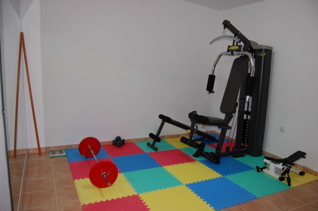 * Large indoor garage (accessible from inside the house) with a gymnasium and bicycles;