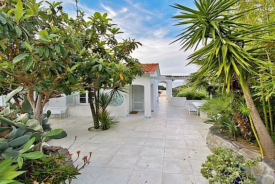 Die stilgerechte und wohnliche Einrichtung passt perfekt zu dem italenischen Charakter des Gebäudes. Die hochwertigen verarbeiteten Materialien setzten sich in den luxuriös ausgestateten Doppelschlafzimmer und einem im Bootsstile angelegtes zwei Bett Zimmer. Aus dem Doppelschlafzimmer geniesen sie einen herlichen Meerblick. Eine voll ausgestattete Küche inklusiver Spühlmaschine ist vorhanden. Vor dem Haus befindet sich ein schöner Zitrusgarten. Die Villa Meridiana hat einen terrassenförmig angelegten Garten, der sich über 4000 qm² in richtung Meer hinzieht.