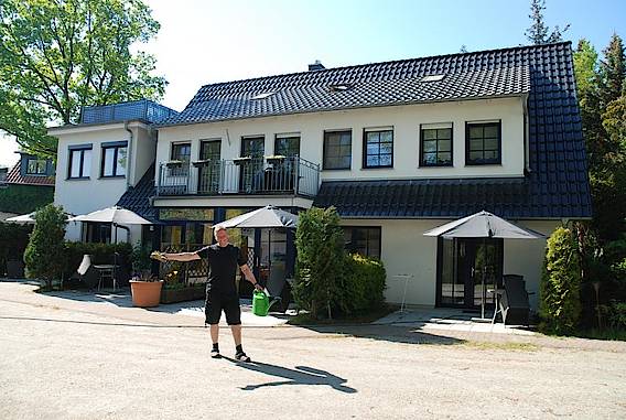 Sie fahren entweder mit dem PKW von der A20 über den Rügendamm in Stralsund in Richtung Bergen, dann nach Binz, in Binz angekommen im Kreisverkehr die 2. Ausfahrt nehmen, hinter der Grafitiwand das erste Haus auf der linken Seite - dann haben Sie uns erreicht. Alternative ist die Fahrt über die Fähre von Stahlbrode nach Glewitz (April-Oktober) über Garz, Putbus, Zirkow links abbiegen, durch Zirkow durchfahren, rechts auf die Bundesstraße durch Pantow bis Binz. In Binz wieder bis zum besagten Kreisverkehr, 1. Ausfahrt, hinter der Grafitiwand das erste Haus auf der linken Seite. Auf dem Hof können Sie dann parken, wir - Ihre Gastgeber - nehmen Sie dann in Empfang und bringen Sie zu Ihrer Ferienwohnung.