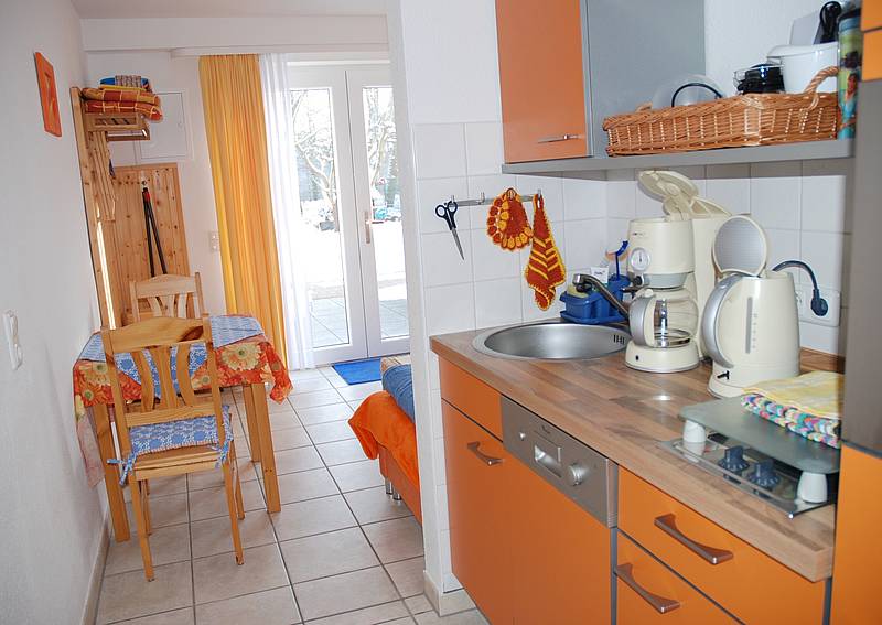 gemütliche kleine Ferienwohnung orange-blau für 2 Personen, strandnah & zentral, Nichtraucher, ebenerdig, haustierfrei